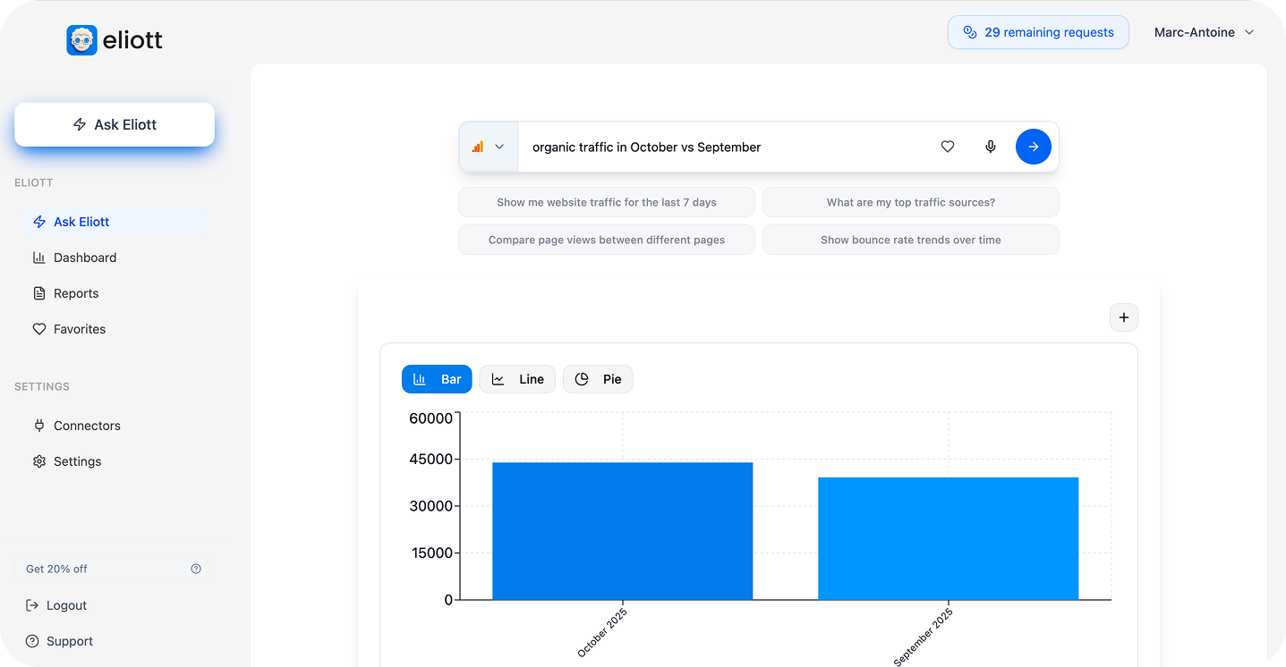 Connect your marketing tools and ask Eliott questions about your data.